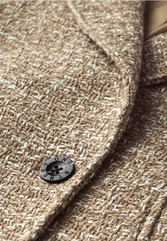 Het Street One boucléjack voor dames is een modieuze highlight met zijn unieke bouclépatroon. De reverskraag en steekzakken zorgen voor een klassieke touch, terwijl de behaaglijke materiaalmix voor comfort zorgt. Een stijlvolle metgezel voor vele gelegenheden.