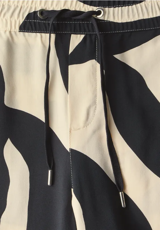 Deze Wide Legs broek van Street One voor dames heeft een trendy patroon en een moderne Loose Fit. De High Waist creëert een flatterend silhouet, terwijl de elastische tailleband met trekkoord zorgt voor een comfortabele pasvorm. De lichtgewicht viscose stof maakt ze ideaal voor ontspannen en modieuze looks.