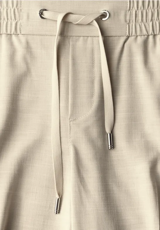 Deze lichtgewicht Street One-broek voor dames maakt indruk met zijn trendy gemêleerde look en comfortabele Loose Fit. De Mid Waist en Slim Legs creëren een modieus silhouet, terwijl de elastische tailleband met trekkoord maximaal comfort biedt.