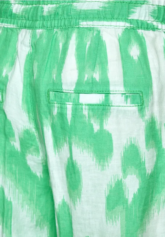 Street One damesbroek met hoge taille, linnen broek in loose fit, wijde pijpen, elastische band en trekkoord, steekzakken aan de zijkant, grafisch ikatpatroon