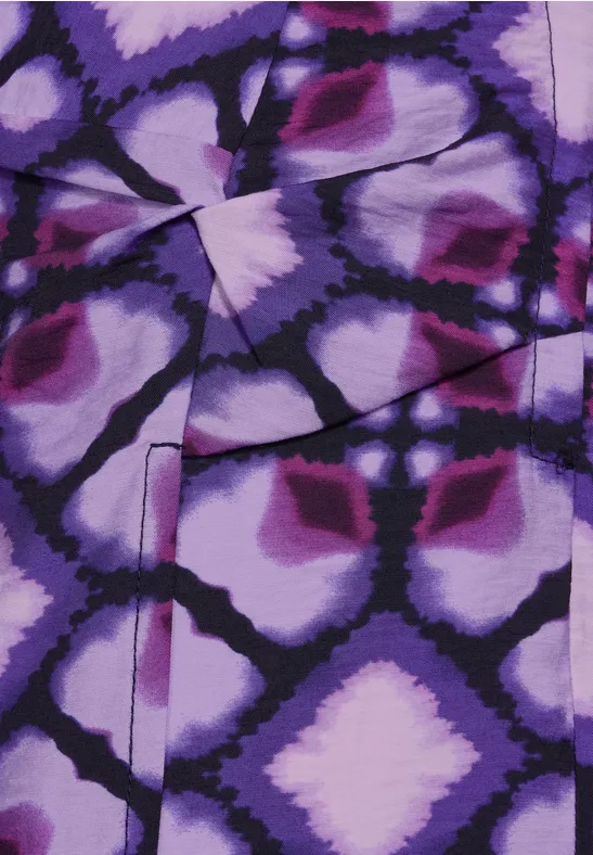 Street One korte broekrok voor dames, wikkel-look met knoopdetail, elastische tailleband achter, ritssluiting opzij, split achter, grafisch patroon, style Lou