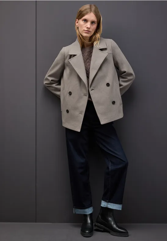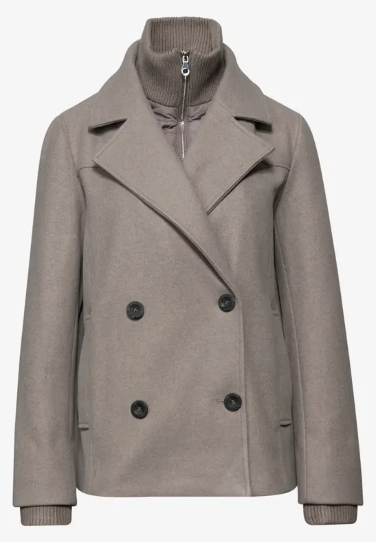 Het caban jack van Street One voor dames heeft een moderne gelaagde look en een slim ontwerp. De uitneembare gewatteerde voering met opstaande kraag zorgt voor behaaglijke warmte en kan flexibel gedragen worden, afhankelijk van het weer. Met klassieke knopen, steekzakken en manchetten aan de mouwen is deze jas een stijlvolle metgezel voor overgangsseizoenen.