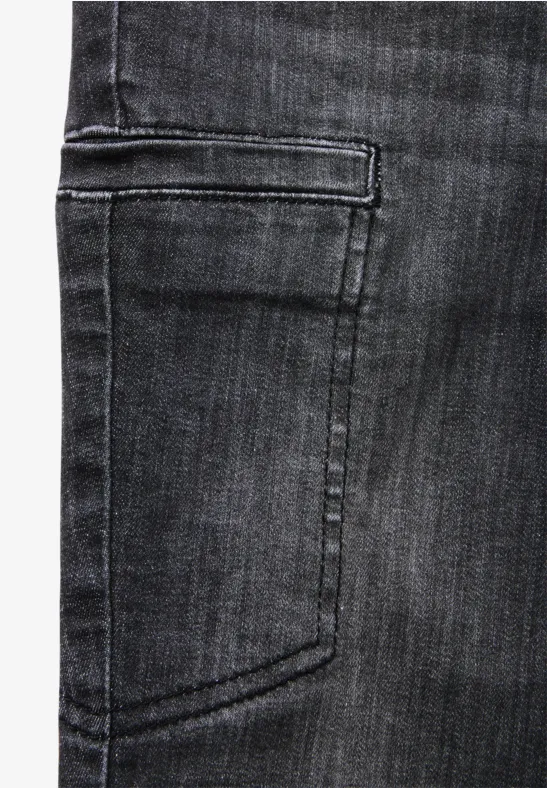 Deze cargo-achtige jeans van Street One voor dames combineert een casual losse pasvorm met een middelhoge taille en slanke pijpen. De steekzakken zorgen voor een sportief accent, terwijl de katoenmix met stretch optimaal comfort biedt. Perfect voor een relaxte alledaagse look.