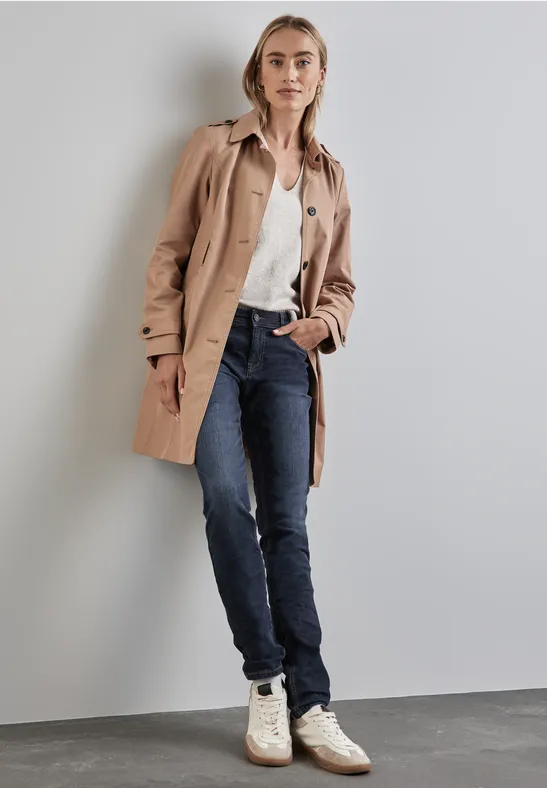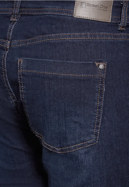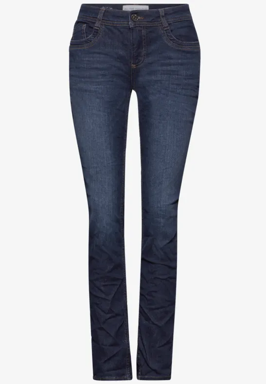Street One damesjeans casual fit, jeansbroek, lage taille met slanke pijp, knoop en ritssluiting, 5-pocket, katoenmix met stretchgehalte