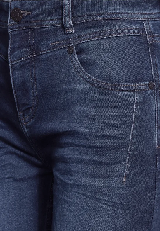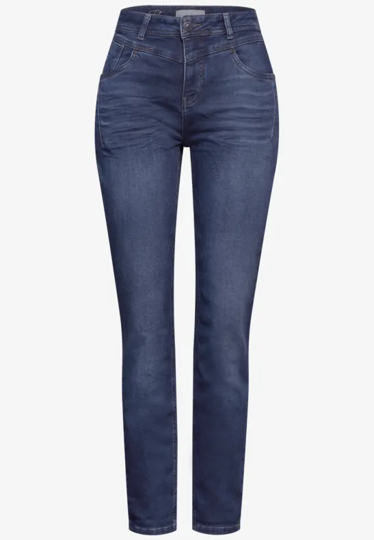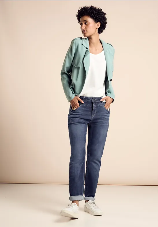 Street One damesjeans casual fit, mom jeans, hoge taille met slanke pijp, knoop- en ritssluiting, 5-pocket, katoenmix met stretchgehalte