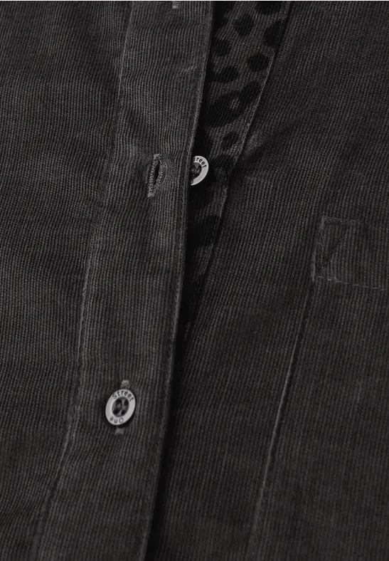 Deze overhemdblouse van Street One voor dames combineert zachte corduroy stof met trendy leo-look tape details - een stijlvolle highlight voor je dagelijkse leven. Klassieke elementen zoals de overhemdkraag, knoopsluiting en borstzak zorgen voor een tijdloos silhouet. Een trendy favoriet met een speciale twist.