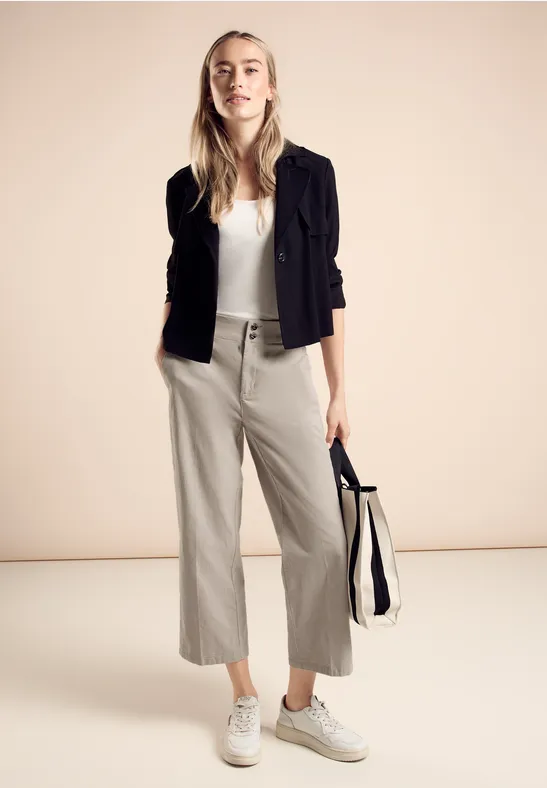 Deze corduroy broek in een casual fit van Street One is een elegante damesbroek met een hoge taille en rechte pijp. De katoenmix met stretch en de steekzakken bieden veel comfort. Perfect voor modieuze outfits.