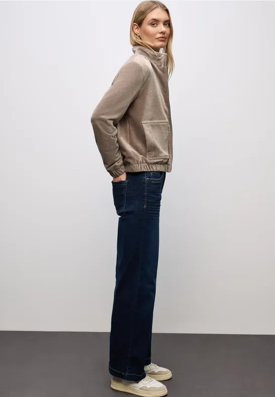 Het corduroy jack van Street One voor dames combineert een casual stijl met comfortabel dragen. De zachte jersey corduroy stof voelt aangenaam aan, terwijl de opstaande kraag en de Stretch zoom een sportief silhouet creëren. Zijzakken en een ritssluiting maken het ontwerp compleet, waardoor het geschikt is om elke dag te dragen.