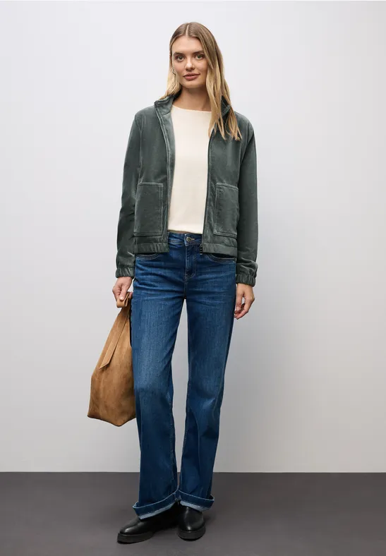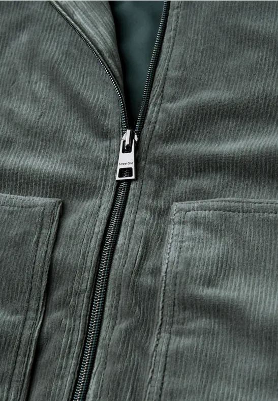 Het corduroy jack van Street One voor dames combineert een casual stijl met comfortabel dragen. De zachte jersey corduroy stof voelt aangenaam aan, terwijl de opstaande kraag en de Stretch zoom een sportief silhouet creëren. Zijzakken en een ritssluiting maken het ontwerp compleet, waardoor het geschikt is om elke dag te dragen.