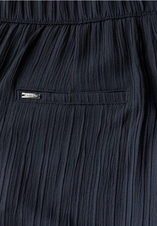 Deze broek met crinkle-textuur van Street One voor dames combineert trendy Wide Legs met een comfortabele High Waist. De elastische tailleband zorgt voor een comfortabele pasvorm. De gestructureerde stof met stretch geeft de look een luchtig gevoel - perfect voor luchtige zomerstijlen.