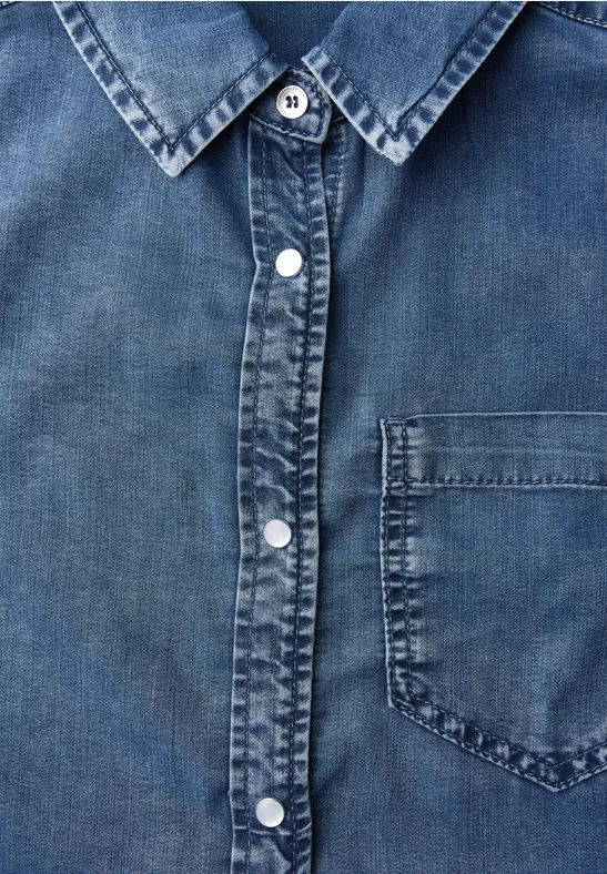 Deze denim blouse van Street One voor dames heeft een zachte lyocellmix en een casual snit. De overhemdkraag, borstzak en klassieke knoopmanchetten geven hem de typische denim look. De stretchstof zorgt voor aangenaam draagcomfort - perfect voor ontspannen casual outfits.