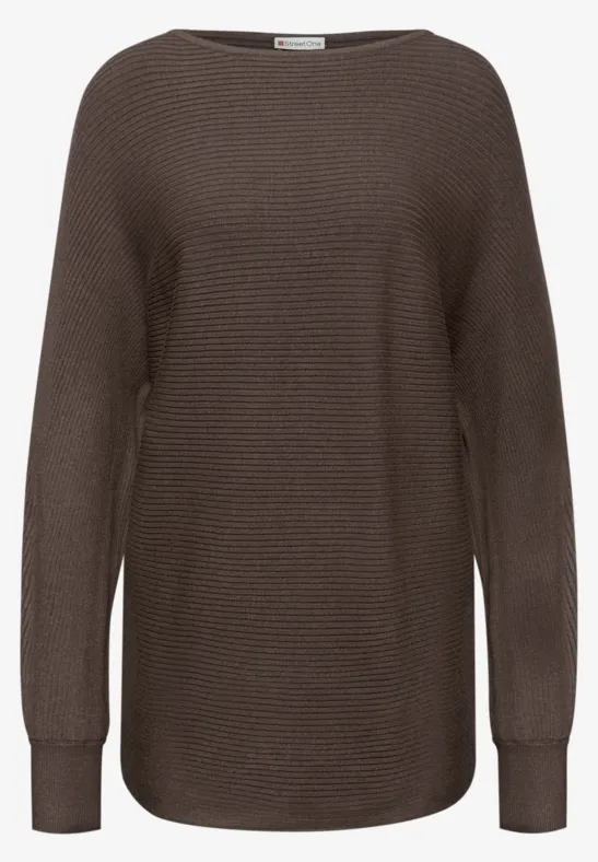 Deze Dolman-trui van Street One voor dames heeft een ontspannen silhouet en een fijne textuur. De boothals benadrukt de vrouwelijke look, terwijl de zachte stof hem comfortabel maakt om te dragen. Perfect voor moderne casual looks met gemak.