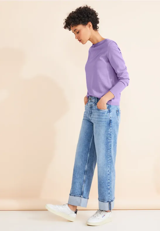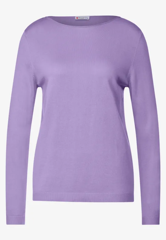 Street One dames basic fijn gebreide trui, boothals, ribgebreide details