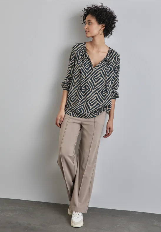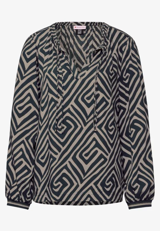 De Street One tuniek voor dames heeft een ronde halslijn met split en een grafisch patroon. De gestreepte boorden en de zachte viscosestof zorgen voor een modieuze en comfortabele look.