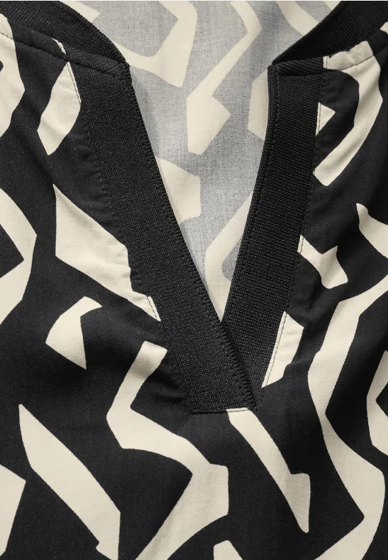 Deze gedessineerde blouse van Street One voor dames is gemaakt van zachte viscose en is zacht om te dragen. De V-hals en afgeronde zoom geven de blouse een vrouwelijke look, terwijl de lange mouwen met elastische manchetten de look afmaken. Ideaal voor modieuze casual of zakelijke outfits.