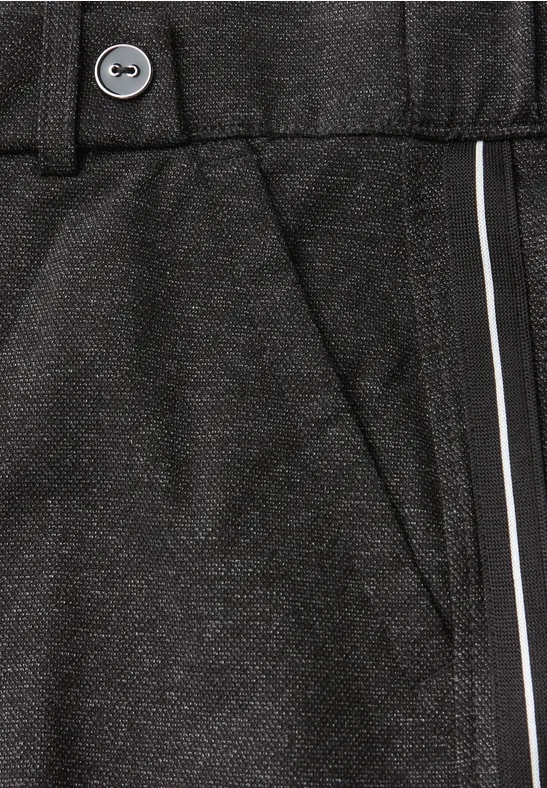 Deze gevlekte broek van Street One voor dames combineert sportieve galonstrepen met een elegante pasvorm. De casual pasvorm met een High Waist en Straight Legs creëert een comfortabel silhouet, terwijl het riemdetail met knopen een modieus accent toevoegt. De steekzakken maken de look geschikt voor dagelijks gebruik en veelzijdig.
