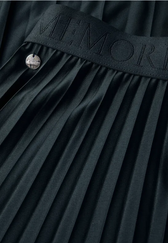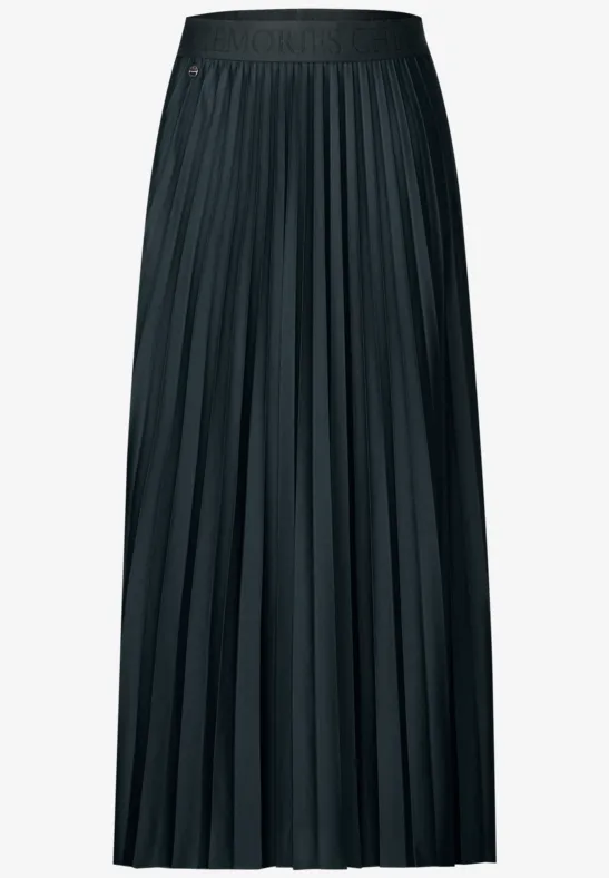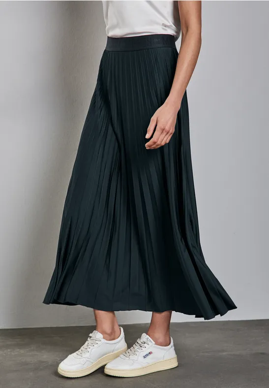 De plooirok van Street One voor dames heeft een zachte drapering en zijdeachtige glans. In een effen kleur kan hij op verschillende manieren worden gecombineerd, terwijl de materiaalmix met stretch een comfortabele pasvorm biedt.