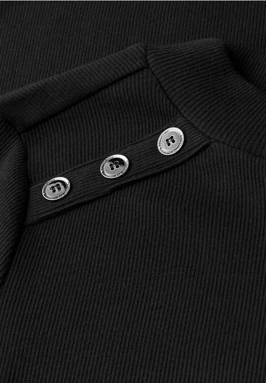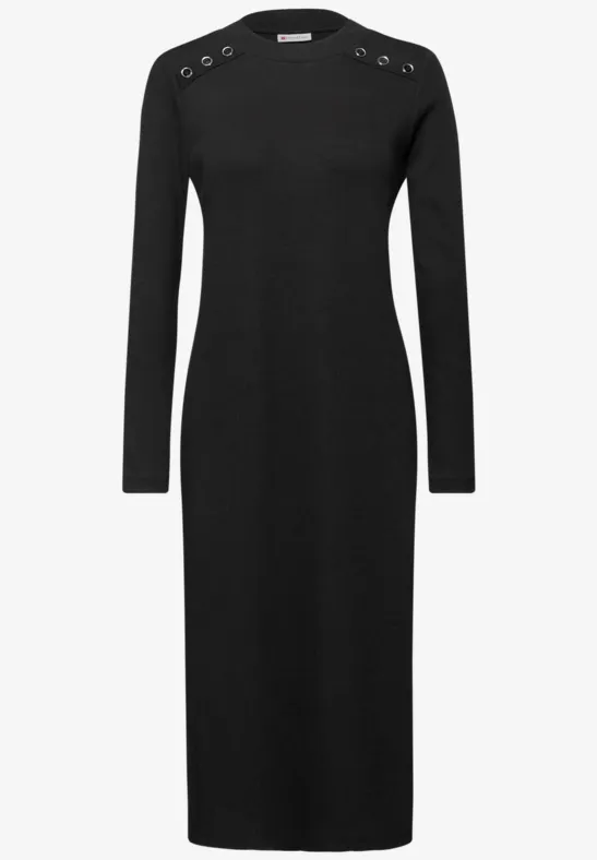 De Street One midi-jurk voor dames maakt indruk met zijn nauwsluitende geribde structuur en modieuze details. De col en knoopdetails op de schouders geven de look een speciale touch, terwijl zijsplitten zorgen voor bewegingsvrijheid en een moderne look. De zachte stof is comfortabel om te dragen en maakt deze jurk de ideale stylingpartner voor gezellige casual outfits.