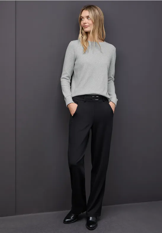 Dit Street One Shirt voor dames heeft een diagonaal structuurpatroon dat diepte geeft aan de look. De zachte stof en comfortabele manchetten maken het de ideale partner voor ontspannen outfits met stijl.