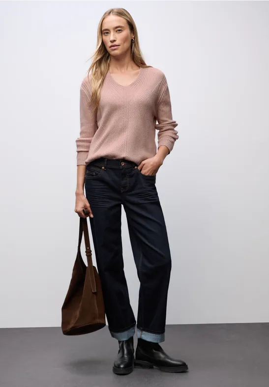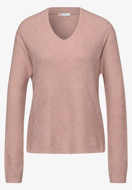 Street One Dames Gestructureerde trui met V-hals in Roze, in size: 46