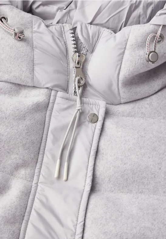 Deze dames gewatteerde jas is een echte must-have voor de moderne garderobe. Met zijn stijlvolle gemêleerde materialenlook en lange snit met capuchon, combineert deze jas functionaliteit met modebewustheid. Het tunnelkoord zorgt voor een perfecte pasvorm, waardoor je optimaal beschermd bent tegen de kou. De comfortabele opvulling houdt je warm zonder in te boeten op ademend vermogen, ideaal voor zowel dagelijkse uitjes als langere buitenactiviteiten. De praktische zijzakken bieden voldoende ruimte voor essentials, terwijl de binnenzak een veilige plek biedt voor waardevolle spullen. Deze veelzijdige jas is perfect te combineren met zowel casual als meer geklede outfits, waardoor hij een waardevolle aanvulling is op elke wintergarderobe. Met deze gewatteerde jas ga je met stijl de winter in en ben je verzekerd van een trendy en functioneel uiterlijk, ongeacht de gelegenheid. Ervaar het ultieme draagcomfort en de fashionable uitstraling van deze jas!