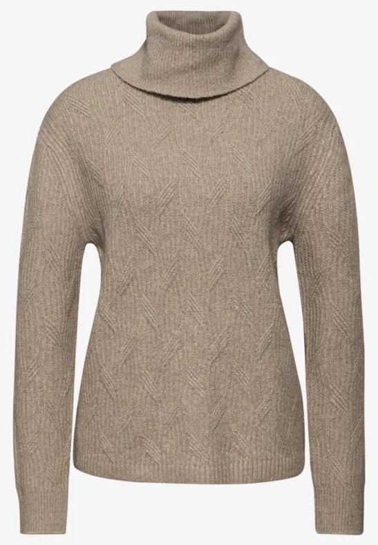 Deze gebreide trui van Street One voor dames heeft een subtiel structuurpatroon en een zachte katoenmix met stretch. De col zorgt voor een extra dosis warmte, terwijl de comfortabele pasvorm je door frisse dagen loodst. Ideaal voor ontspannen looks met een modieuze twist.