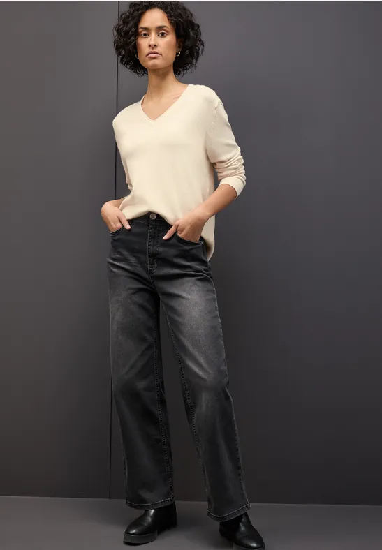 De V-hals trui van Street One voor dames zorgt voor echte feel-good momenten met zijn zachte gevoel. De vrouwelijke V-hals en de ontspannen snit maken hem tot een veelzijdige stylingpartner. Ideaal voor behaaglijke alledaagse looks met een stijlvolle touch.