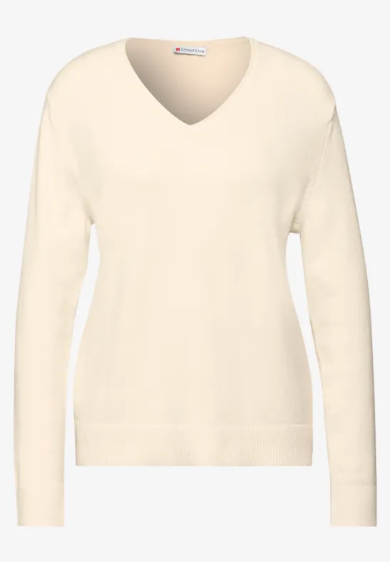 Street One Dames Gezellige trui met V-hals in Beige, in size: 42