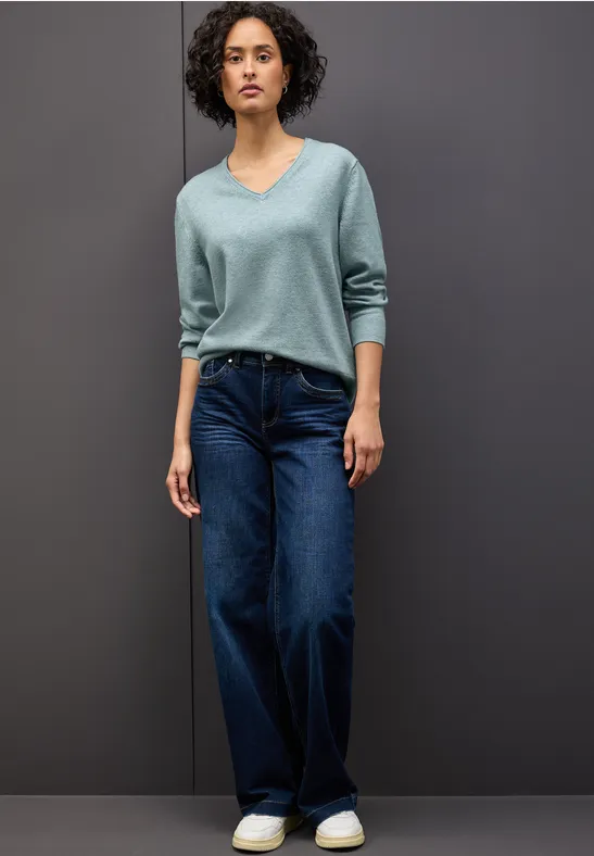 Street One Dames Gezellige trui met V-hals in Blauw, in size: 40