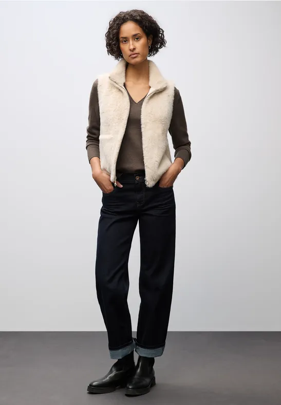 Deze Straight Legs broek van Street One voor dames combineert een casual pasvorm met een vrouwelijke High Waist. De opgestikte zakken en de elastische...