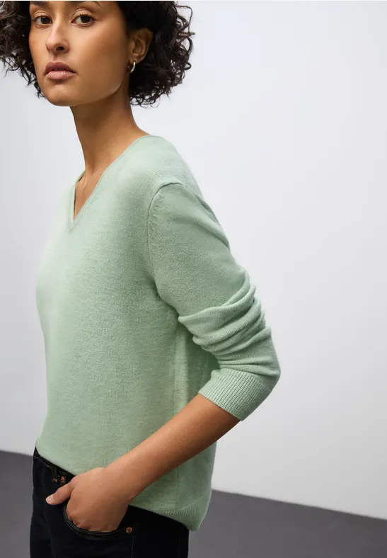 Street One Dames Gezellige trui met V-hals in Groen, in size: 38