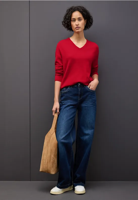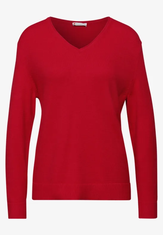 Street One Dames Gezellige trui met V-hals in Rood, in size: 42