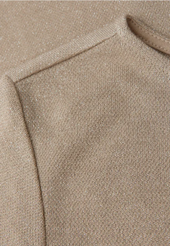 Het Street One damesshirt met lange mouwen heeft een glitterlook en een vrouwelijke boothals. De zachte stof maakt het de ideale stylingpartner voor feestelijke outfits of een vleugje glamour in het dagelijks leven.