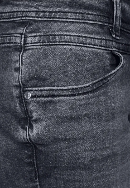 Street One casual fit damesjeans, middelhoge taille, strakke pijpen, grijze wassing, steekzakken
