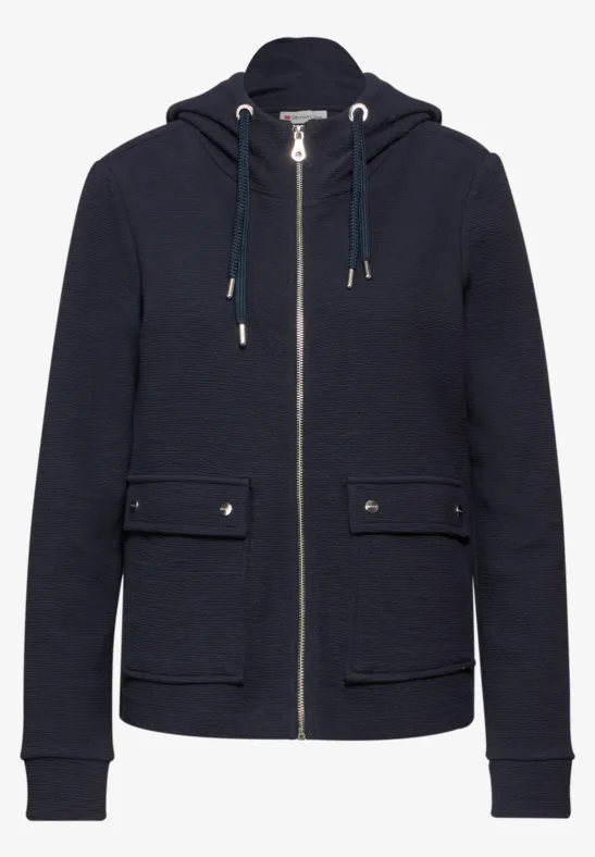 Het Street One capuchonjack voor dames is een gestructureerd jack met een capuchon en trekkoord. De ritssluiting en zijzakken met knopen maken het bijzonder praktisch. Een aangename katoenmix met stretch biedt een hoog draagcomfort.