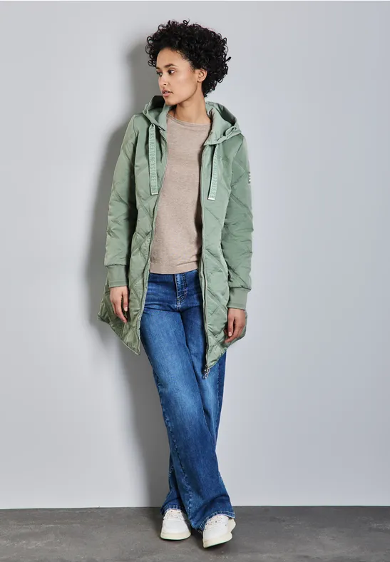 Deze gewatteerde jas met afneembare capuchon van Street One voor dames is de ideale metgezel voor koelere dagen. Het gewatteerde patroon en de steekzakken zorgen voor een stijlvol ontwerp, terwijl de afneembare capuchon met trekkoord deze jas tot een veelzijdige allrounder maakt. Hij is ook aangenaam warm op koude dagen.