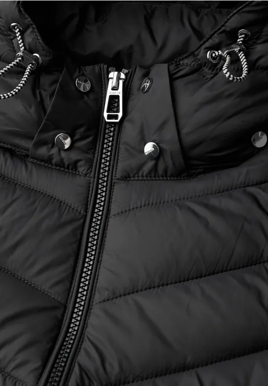 Ontdek het korte gewatteerde jack voor dames, dat opvalt door zijn strakke en stijlvolle uitstraling. Dit jack is perfect voor frisse dagen, dankzij de lichte en ademende voering die zorgt voor optimaal draagcomfort. De afneembare capuchon, die eenvoudig kan worden aangepast met een trekkoord, biedt niet alleen extra bescherming tegen de elementen, maar ook veelzijdige stylingopties voor elke gelegenheid. Met handige zijzakken is dit jack niet alleen praktisch, maar ook een ideale keuze voor een dagelijkse look. De moderne snit en hoogwaardige afwerking maken dit product tot een must-have item in je garderobe, perfect om je outfit een eigentijdse uitstraling te geven zonder in te boeten op functionaliteit. Geniet van de combinatie van comfort en stijl met dit veelzijdige gewatteerde jack, dat gemakkelijk te combineren is met zowel casual als meer formele outfits.