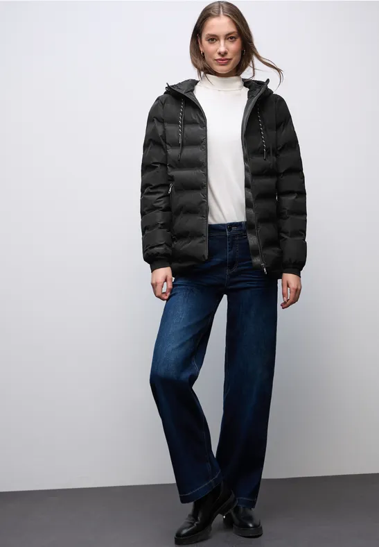 Dit korte jack van Street One voor dames heeft functionele details en een sportieve look. Getapete naden, een capuchon met trekkoord en lange mouwen met zachte manchetten zorgen voor bescherming tegen het koude weer en een hoog draagcomfort. Zijzakken met rits en een knusse voering maken het de perfecte metgezel op koude dagen.