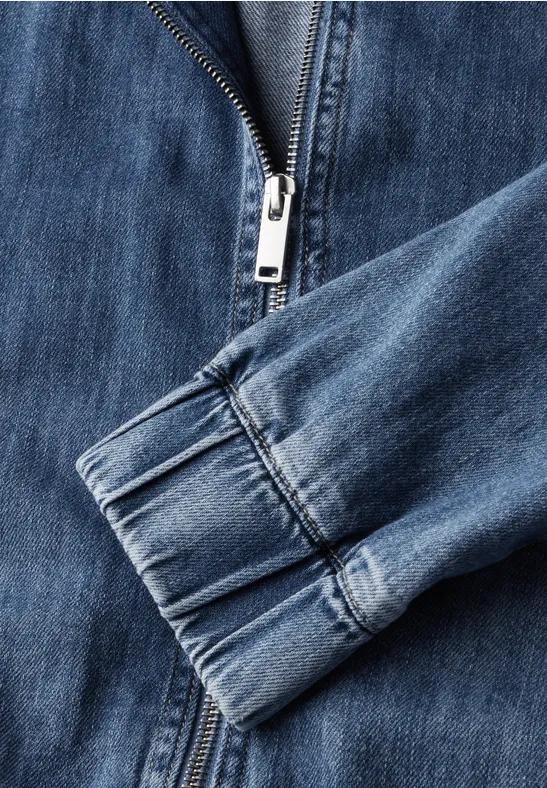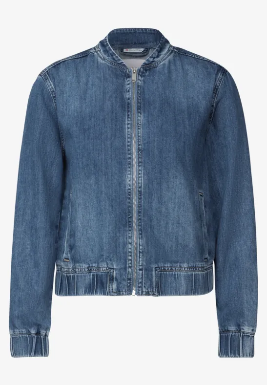 De denim blouson van Street One combineert tijdloze stijl met modern comfort. De ronde halslijn en elastische zoom creëren een vrouwelijk silhouet, terwijl puur katoen garant staat voor een comfortabel gevoel. Zijzakken benadrukken de praktische kant van dit moderne ontwerp.