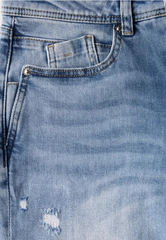 Deze Street One jeans voor dames heeft destroyed look details. De Mid Waist pasvorm en taps toelopende pijpen zorgen voor een modern silhouet. De katoenmix met stretch zorgt voor een comfortabele pasvorm.