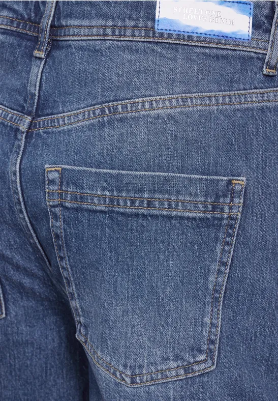 Street One denim damesshort, casual pasvorm, hoge taille, mid blue wassing, comfortabele katoenmix, casual opgerold
