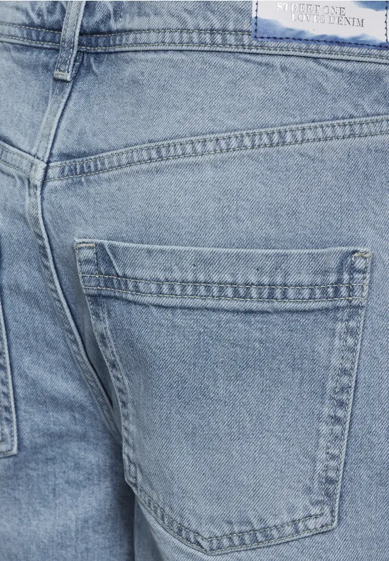 Street One damesshort jeans, zomerbroek in casual fit, high waist, lichtblauwe wassing, comfortabele katoenmix, casual opgerold