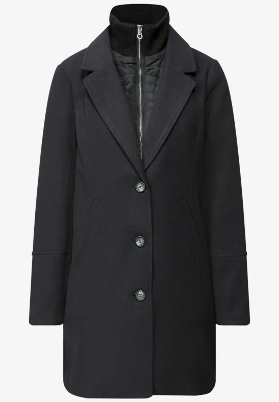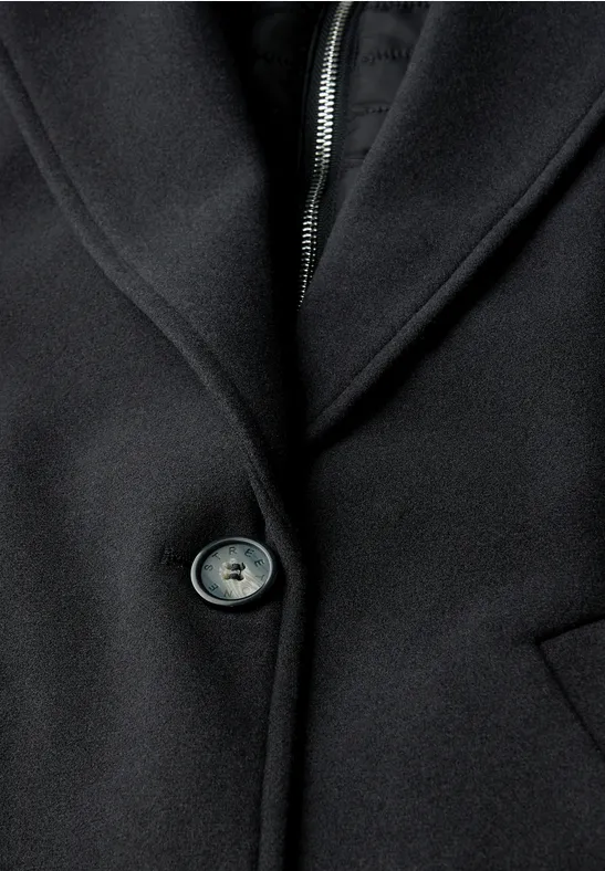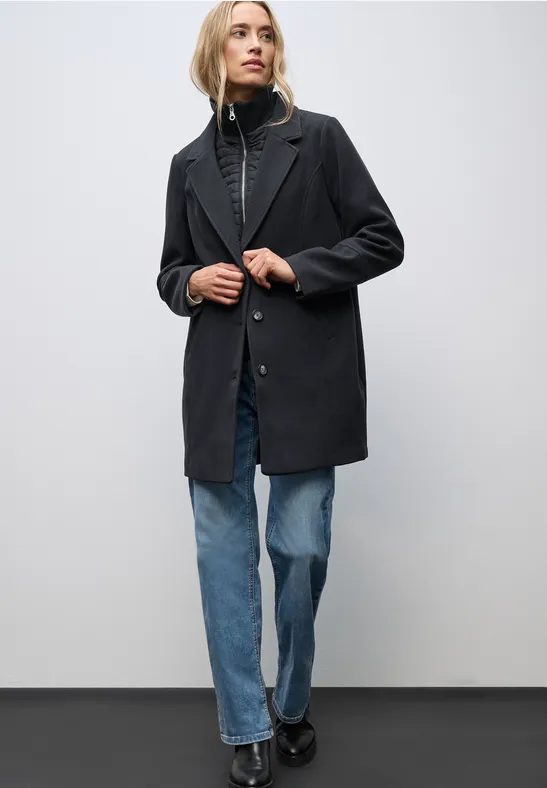 De reversjas met inlay van Street One voor dames combineert klassiek chic met een functioneel ontwerp. De moderne wollen look ontmoet een verwijderbare inleg en een knoopsluiting over de hele lengte - perfect voor veelzijdige looks. Zijzakken en een elegante reverskraag maken het een stijlvolle metgezel voor koelere dagen.