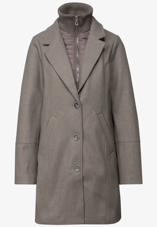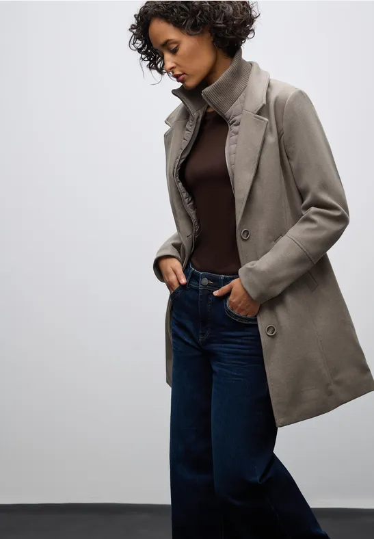De reversjas met inlay van Street One voor dames combineert klassiek chic met een functioneel ontwerp. De moderne wollen look ontmoet een verwijderbare inleg en een knoopsluiting over de hele lengte - perfect voor veelzijdige looks. Zijzakken en een elegante reverskraag maken het een stijlvolle metgezel voor koelere dagen.