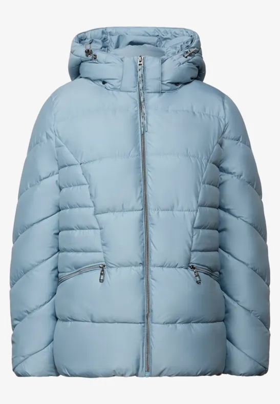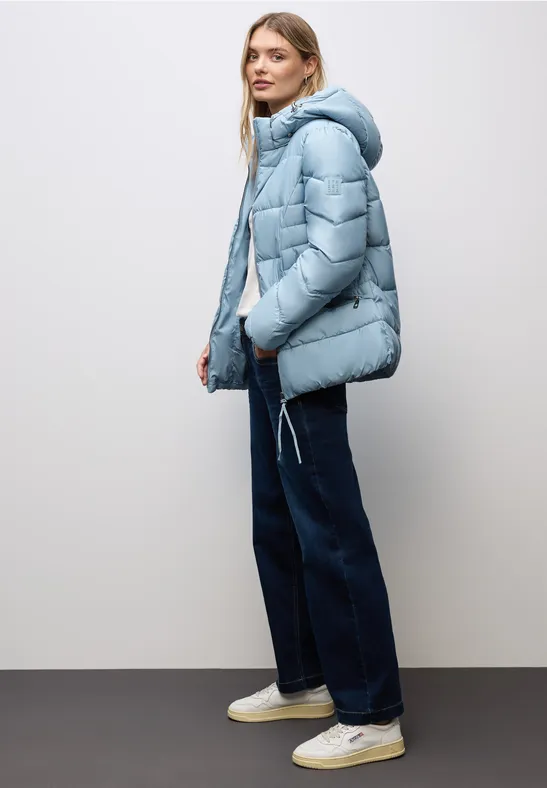 De korte gewatteerde jas van Street One voor dames houdt je warm en stijlvol op frisse dagen. Met zijn aangenaam lichte voering en praktische capuchon met trekkoord is hij uiterst comfortabel om te dragen. De ritszakken aan de zijkanten geven de sportieve look een functionele finishing touch.