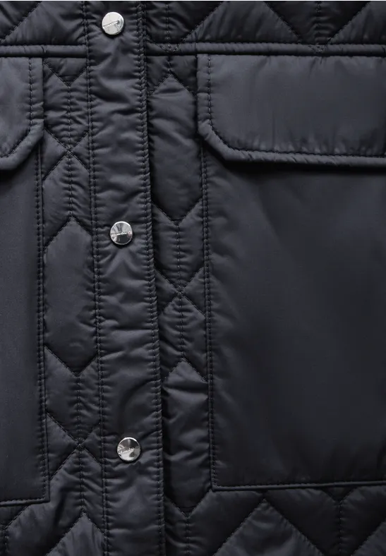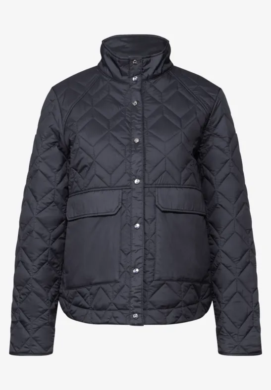 Het gewatteerde jack van Street One voor dames heeft een opstaande kraag en opgestikte zakken. Het klassieke gewatteerde patroon en de knoopsluiting geven het jack een moderne look. Perfect voor een stijlvolle look.