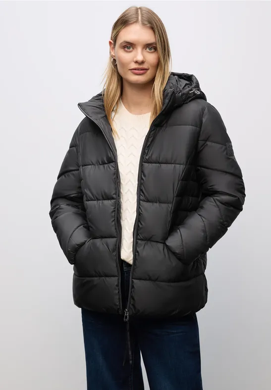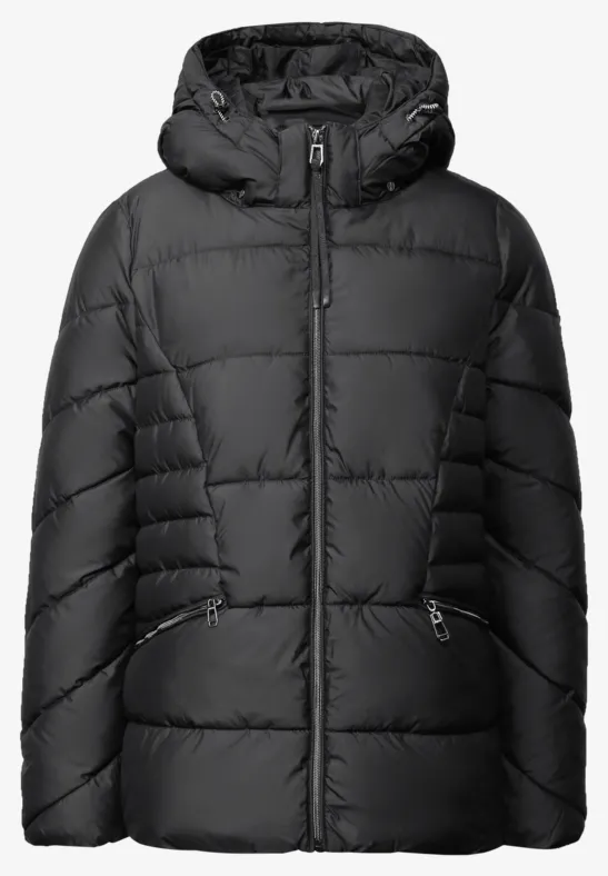 Street One Dames Kort gewatteerd jack in Zwart, in size: 36