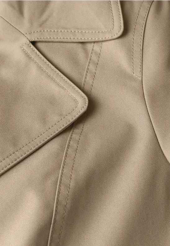 De korte trenchcoat voor dames is de perfecte mix van tijdloze elegance en hedendaagse flair. Met zijn dubbele rij knopen en elegante reverskraag straalt dit kledingstuk een authentieke trench-stijl uit. De handige steekzakken zijn niet alleen stijlvol, maar ook praktisch voor het opbergen van kleine benodigdheden. Een uniek kenmerk is de elastische tailleband aan de achterkant, die bijdraagt aan een flatterend en vrouwelijk silhouet, ideaal voor elke gelegenheid.