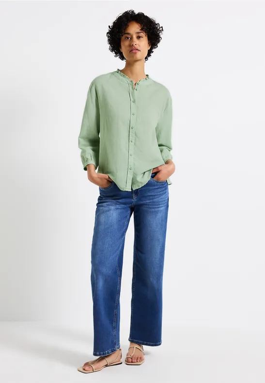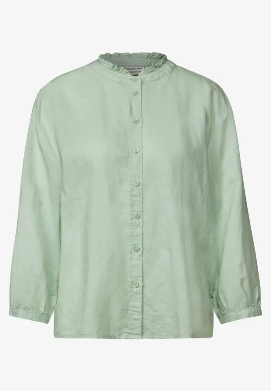 Street One Dames Linnen blouse met ruches in Groen, in size: 36