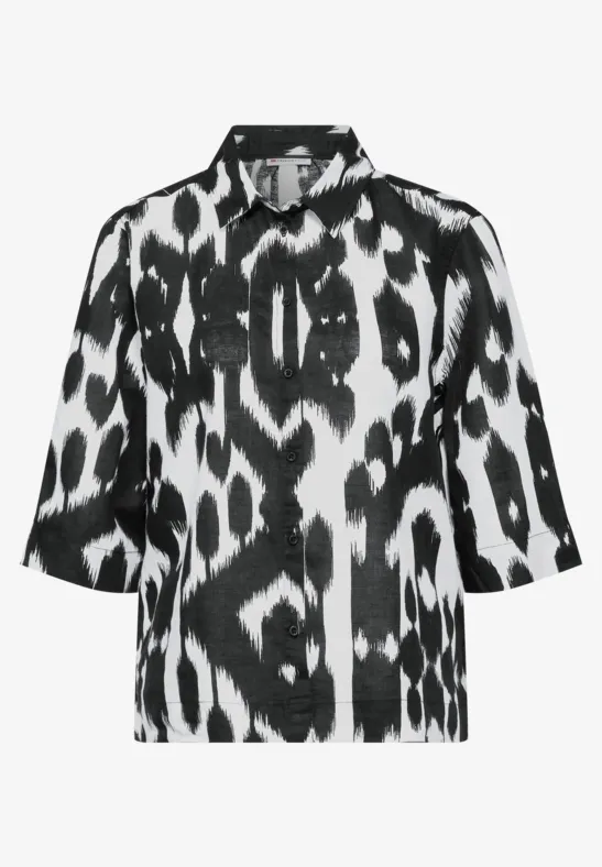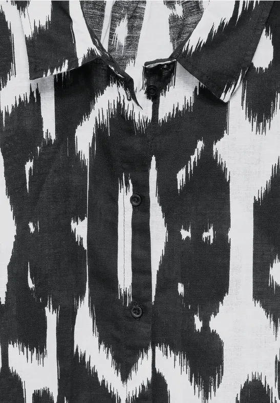 Street One linnen zomerblouse, shirtblouse, kraag en knooppas, 3/4-mouw, linnen-katoenmix, grafisch patroon